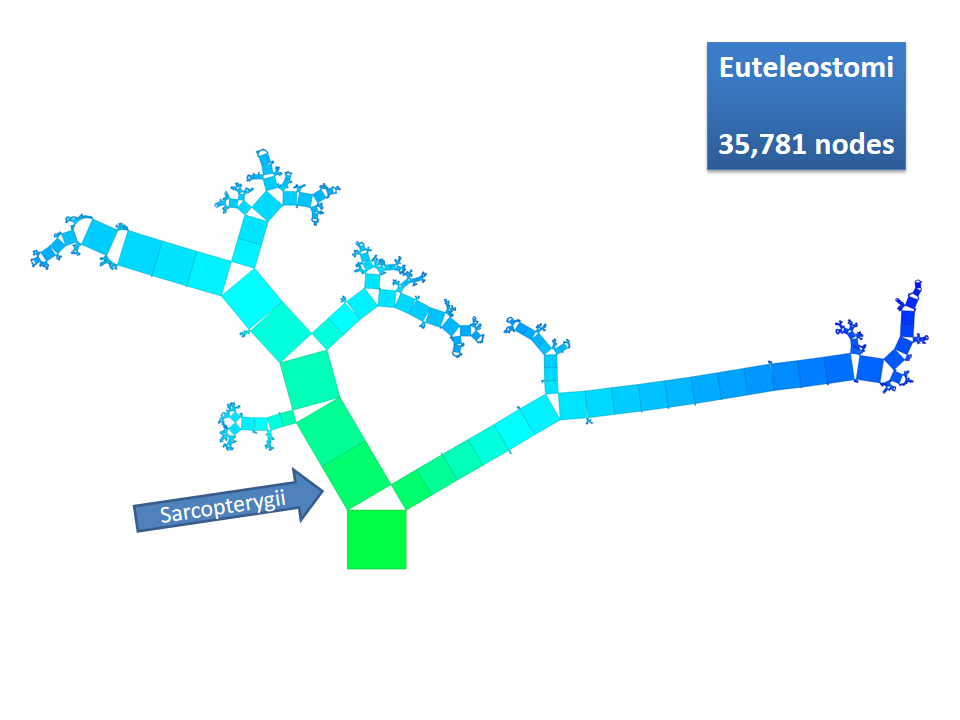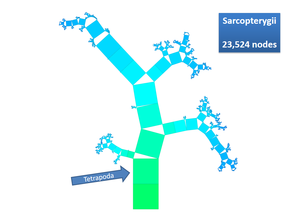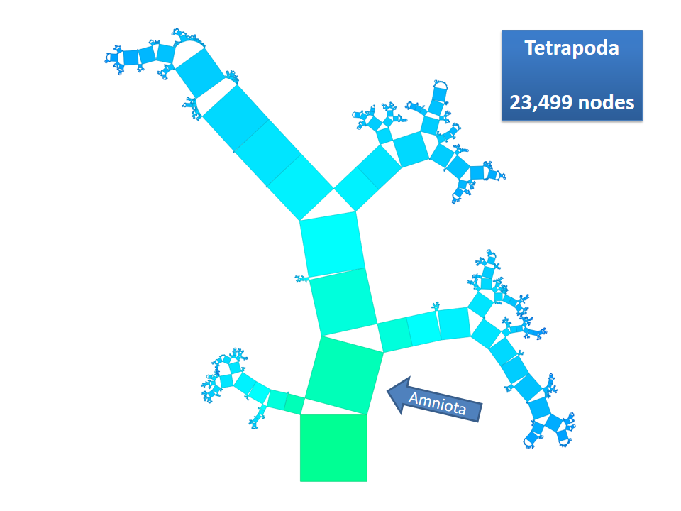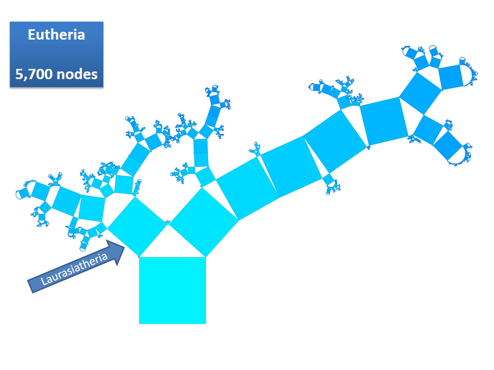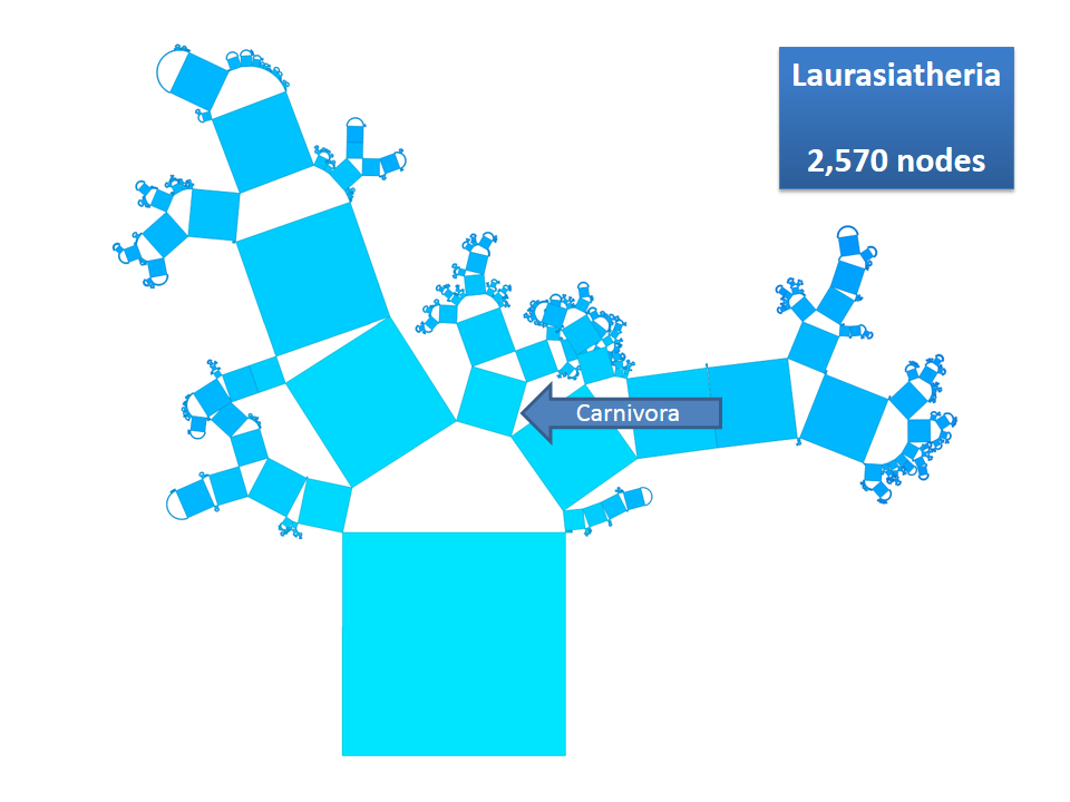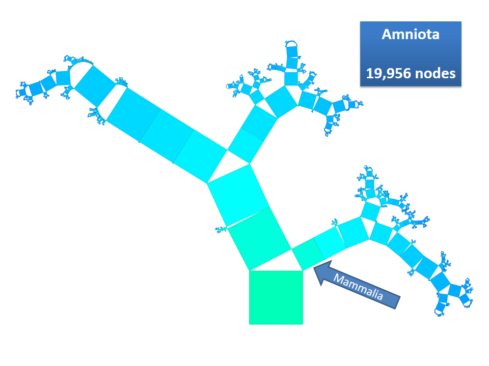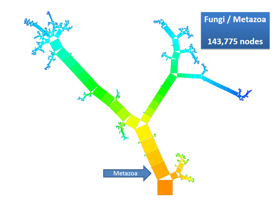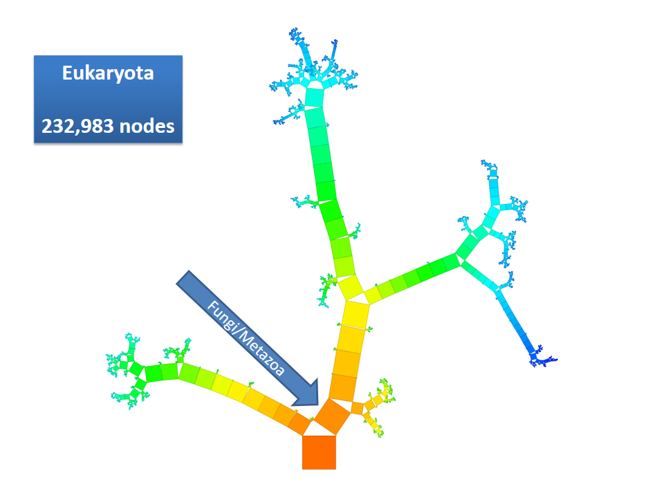 This example shows Generalized Pythagoras Trees applied to the NCBI tree of life. It contains 263,691 organisms classified into 60,585 groups of species (in total: 324,276 nodes). By clicking through the gallery you browse the tree down to a well-known animal: the common dog, Canis Familiaris.